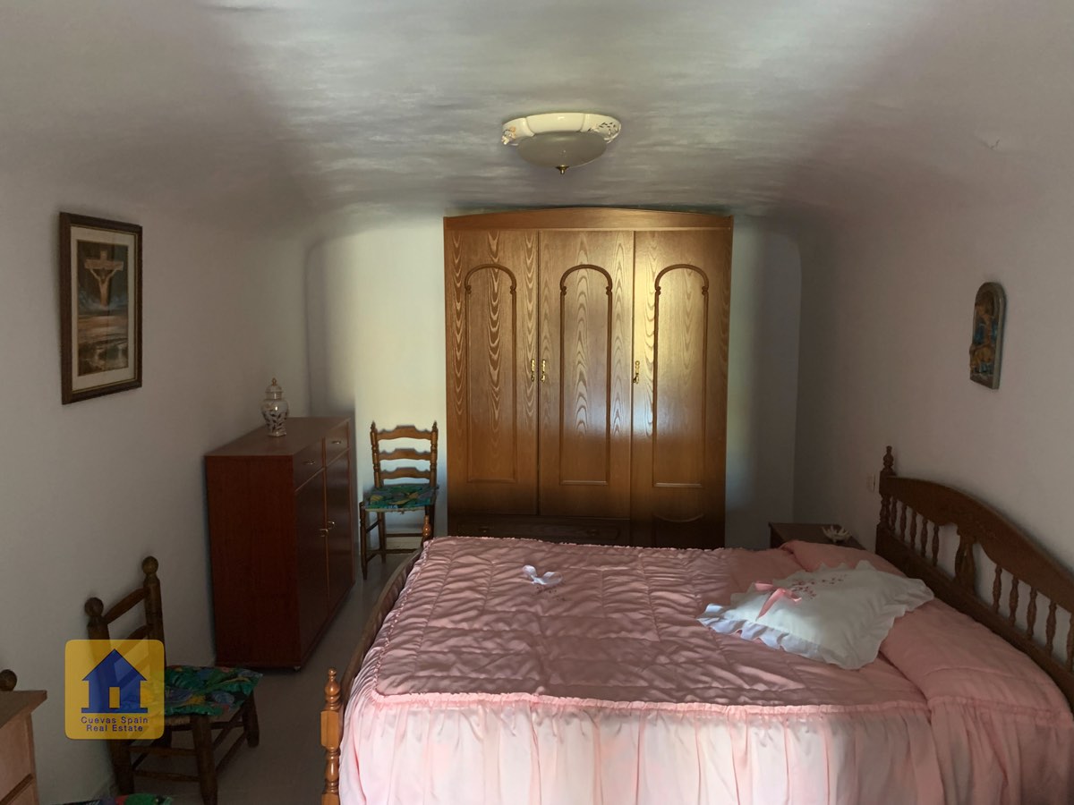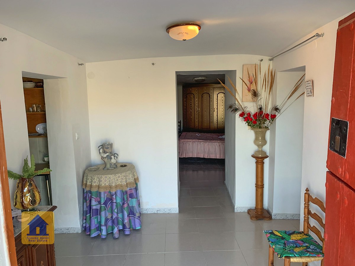 This cave was tastefully built in a classic Spanish style. There are three front windows so the house receives lots of sunlight. The walls are exceptionally thick, offering excellent insolation and functions as a protective canopy over the front door. This cave house is ready to move in though could benefit from updates.