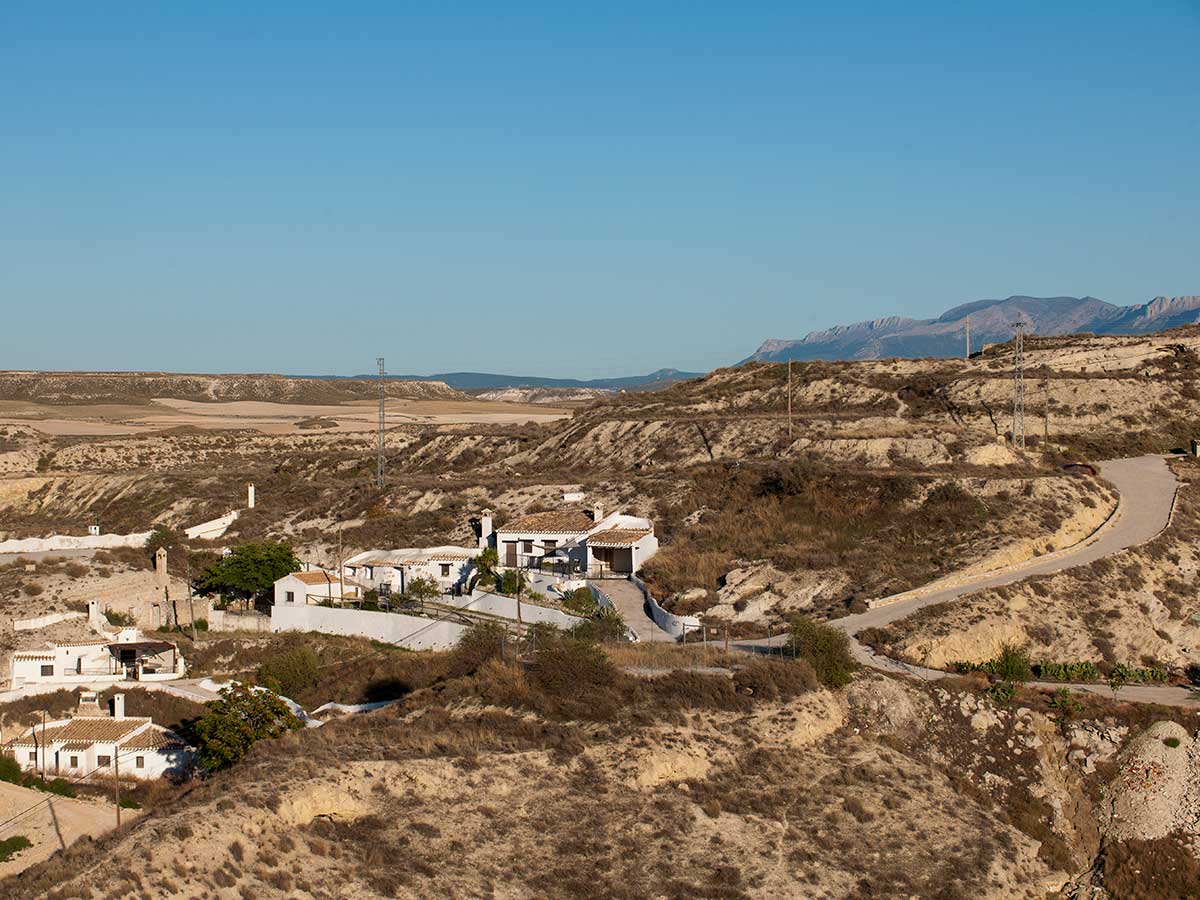 Two beautiful connected cave houses in the heights of Galera. The caves are totally independent and are designed to be lived in either separately or as one home,. Each one has a large terrace with fantastic views facing west and sun all day long. The cave to the right (facing the caves) is a spacious 1-bedroom with sleeping space for 2 guests in the living room, carport and utility room. The cave on the left has 3 double bedrooms, one with walk-in closet. Both caves have kitchens with views over the valley. Both have spacious bathrooms. Parking space in the driveway, more parking at the front. Less than 10 minutes walk to Galera village where you will find all amenities, tapas and restaurants. Easy access, just 2-3 minutes off the main road to Huéscar or Baza.