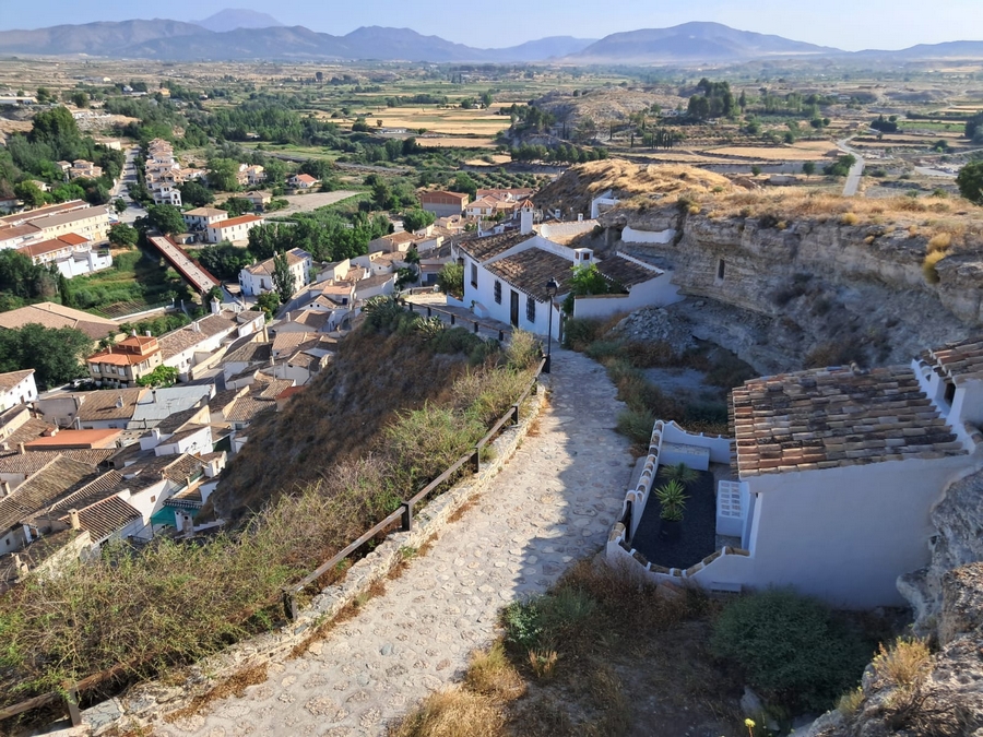SOLD: An impressive and unique cave house that runs through the hillside with entrances on both sides. Sat high on the hillside of the charming village of Galera Granada with spectacular views of the village and countryside on both sides of the valley. This light and airy cave has been finished to a very high standard. Sold partially furnished. -----------------------------------------------------------