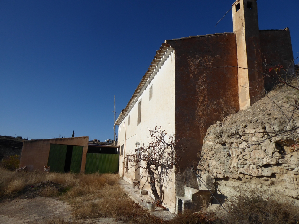 Amazing detached 2 storey farmhouse for renovation with a large garage/workshop and an independent detached cave on the land ideal to finish as a rental apartment. The home is south-facing, completely private and located in gorgeous location with tarmac access near the historic village of Galera, Granada. Excellent potential to finish the home for private or business use. Situated in the perfect location for a large family home or home with separate rental units or bed and breakfast. The property includes approximately 2600 sqm (0.64 acres) of surrounding land. The main home has about 340 sqm of build size plus the 85 sqm workshop/garage next to the house a a detached 22 sqm 2 room cave on the land and an outbuilding to the side of the house that was the old bakery. Mains electric and water. ----------------------------------- The property is accessed via a level tarmac lane and has a private drive to the house. Large area out the front of the property with plenty of room for parking and pets. Wonderful outlook across a green valley towards the mountains. ----------------------- The house has a large stone build 2 storey part at the front with kitchen, living room, bathroom, upstairs are large, open storage rooms ideal to convert to bedrooms or separate rental apartments and and at the back and to the sides of the standard build part of the home are various spacious cave bedrooms and storage rooms. The interior has the potential, space, rustic charm and layout to be converted to something very special. -------------------------------- About 50 meters to the upper right of the main house is a detached storage cave which would be ideal for conversion to an independent apartment or studio or also stables or kennels.