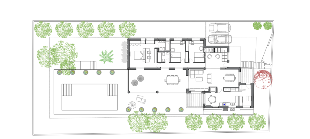 This plot is located near the center of the quiet village of Gata de Gorgos. It has beautiful views of the Montgó and the green hills of the nature reserve located just behind the village where you can find numerous hiking trails. It is 1000m2 in size. The plot includes a project for a modern villa of 2 floors and a basement. There is also the possibility to buy the plot without the project.