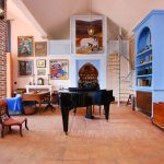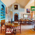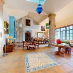 Step through the grand antique wooden doors into a majestic entry hall, where timeless elegance beckons. The sprawling double-height living room, adorned with Moorish arches, brick pillars, and original tiling, evokes a sense of old-world opulence. Flooded with natural light, this central hub seamlessly blends distinct living areas, including a cozy lounge with a roaring fireplace, an intimate dining area, and a tranquil music or study corner. Throw open the French window doors and step onto the terrace, where captivating vistas await.