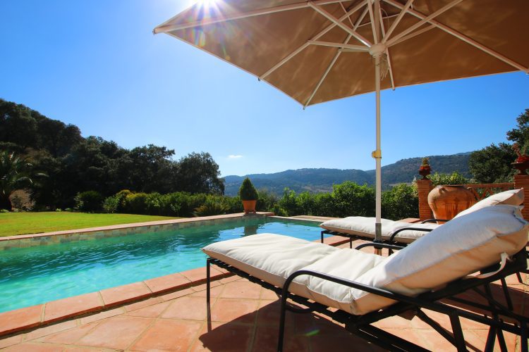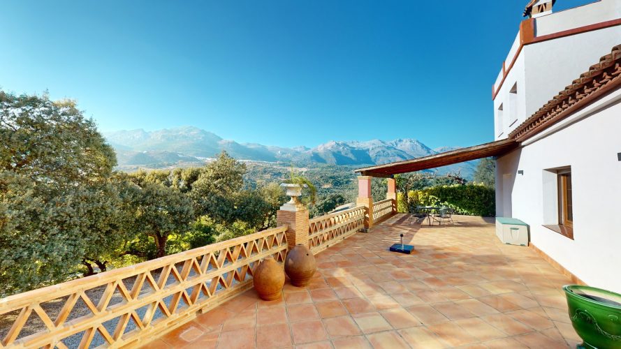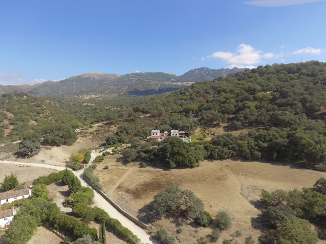 SPECTACULAR COUNTRY HOUSE situated in the Serrania de Ronda midway between Gaucin and Cortes de la Frontera . Exceptional panoramic views and am amazing landscaped garden with water features and a magnificent swimming pool . easy access location within walking distance to the nearest village ( Cañada de Real Tesoro )