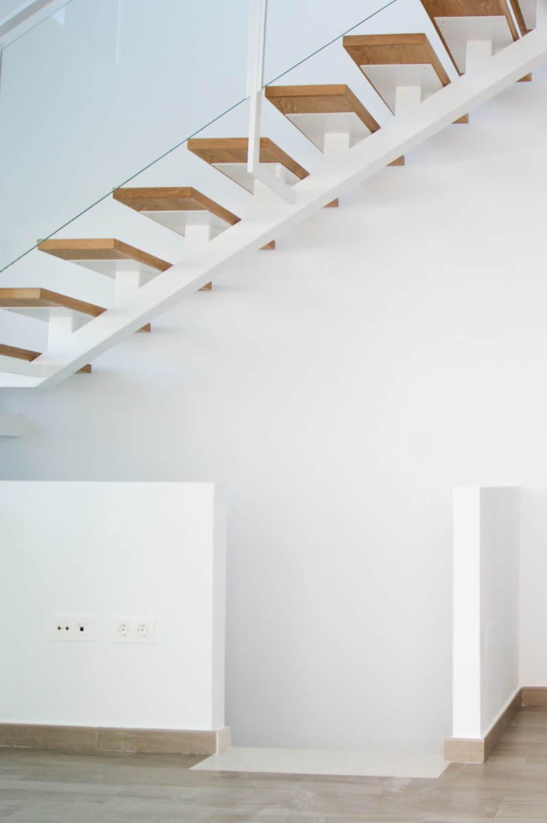 It is a house of linear and modern design both inside and outside. It is characterised by its large front glass that provides natural light to the house practically all day. The houses are distributed in two heights duplex, with a staircase of wooden steps in linear and simple finishes. Outside, it has a 25 m2 garden parking and a backyard. It has a space of 68 m2 useful, which can be configured in different distributions.1, 2 or up to 3 bedrooms, separate kitchen or American, 1 or 2 bathrooms or the option to choose large open and open areas instead of bedrooms.
