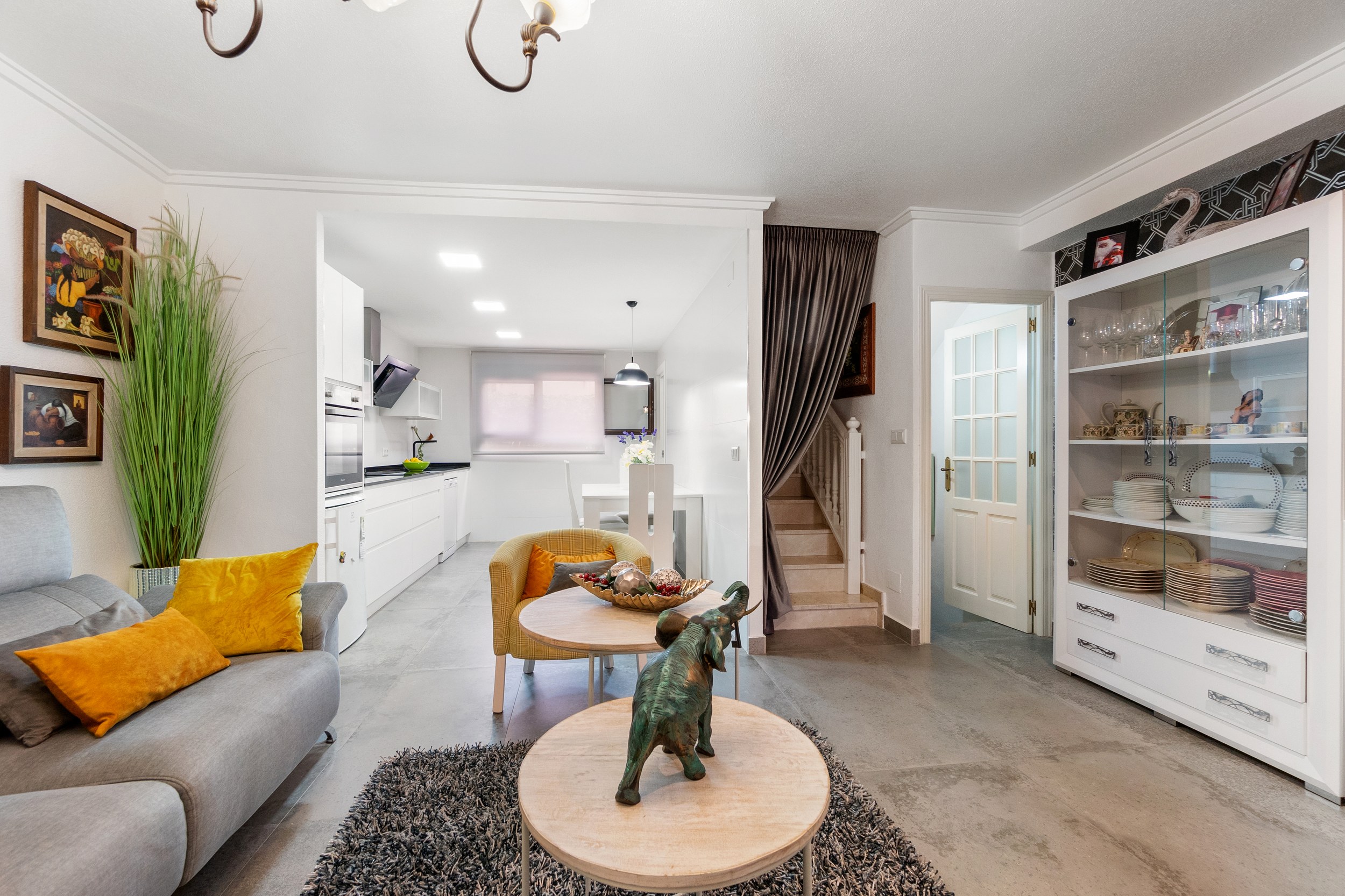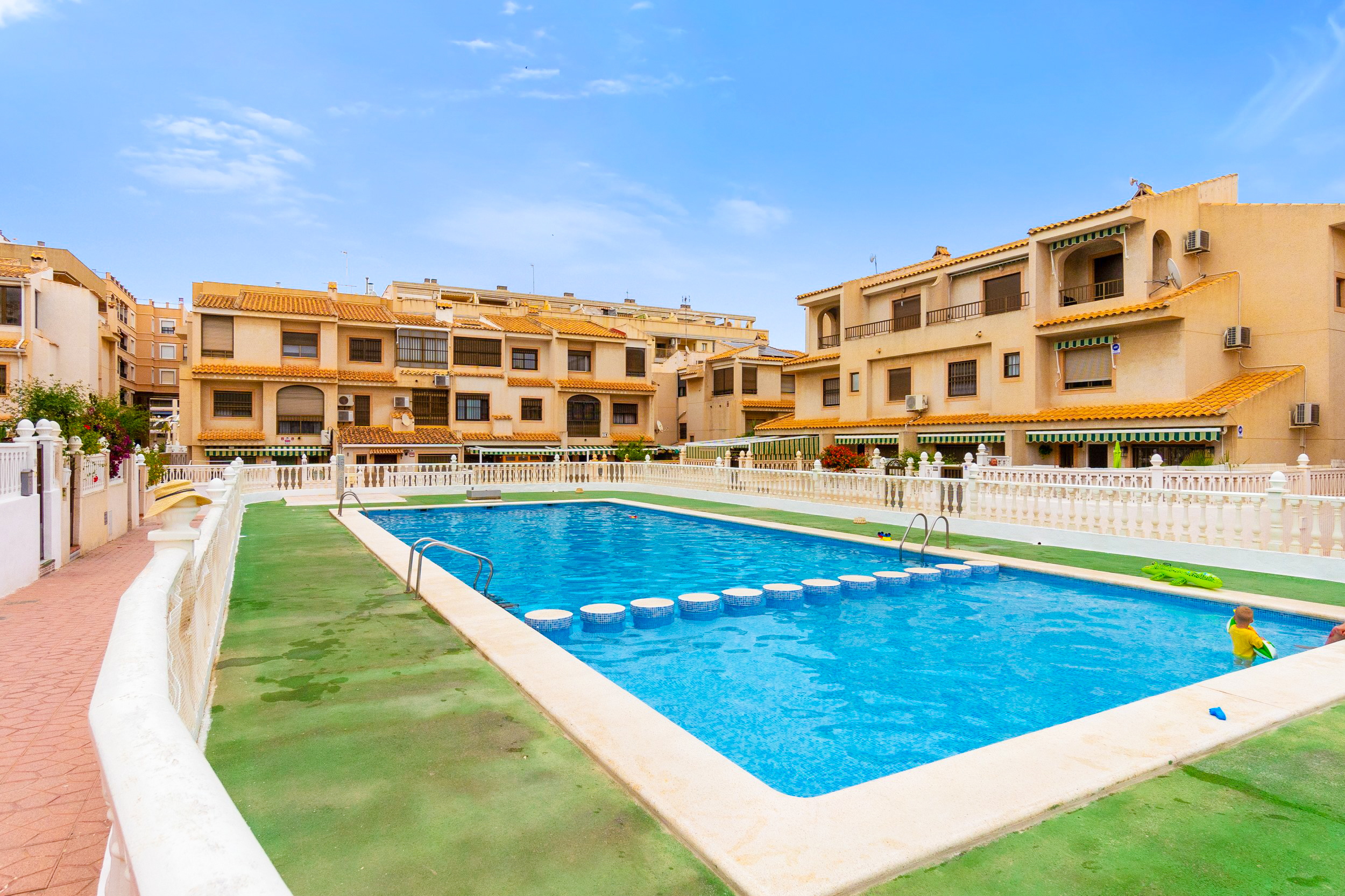 Spacious townhouse in Guardamar del Segura. The property is divided into 3 floors, on the first floor there is a spacious living room and kitchen. On the second floor there are 2 bedrooms and a bathroom. On the second floor there are 2 bedrooms and a bathroom. The property has a basement, garage inside the property and communal pool.
