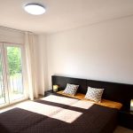 The hallway leads to the two bedrooms. Each bedroom has built-in double wardrobes with sliding doors and independent Juliette balconies with views over the communal gardens towards the driving range.