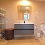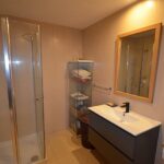 The bathroom comprises of toilet, bidet, vanity unit with wash-hand basin and mirror above. There is a corner shower cubicle and ample space to convert this to a full width walk-in shower. It is one of the larger bathroom designs of the properties on Hacienda Riquelme.