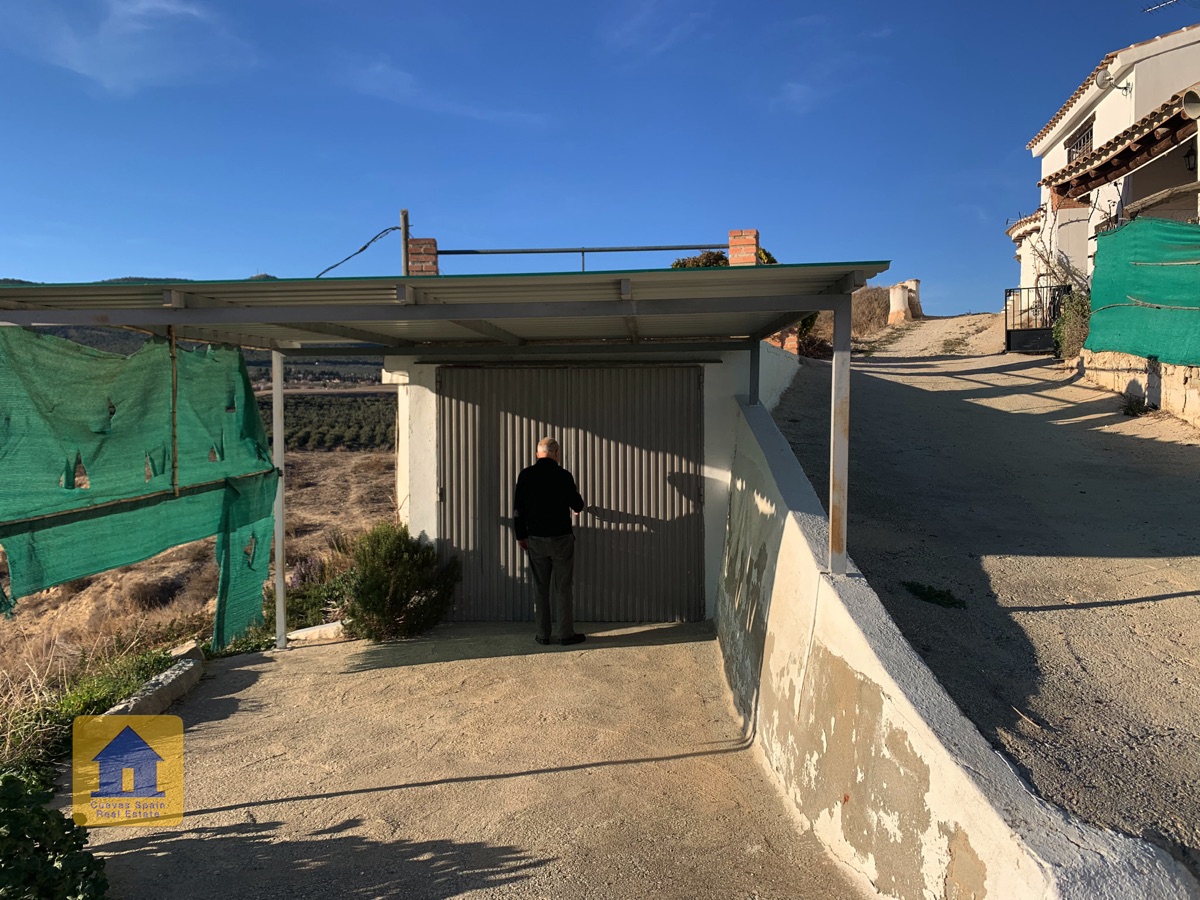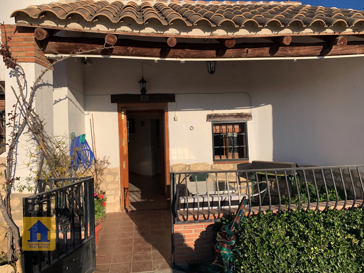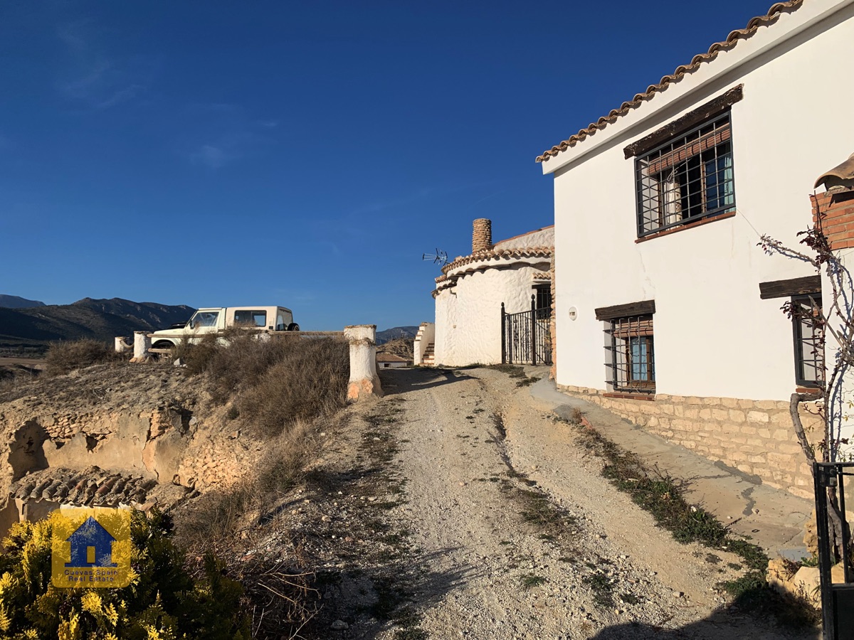 The cave has a covered front patio for outdoor dining and a large, fully tiled terrace that gets sun all day. Below the terrace is a one-car garage with additional parking space in front of the garage. The garage has a wood oven. The track to the house is narrow and passes between the cave house and the terrace and garage. This track continues through a small neighbourhood and exits up a hill onto a wide open plains with mountains in the distance. A beautiful community swimming pool and recreational park is just a 2 minute drive or 15-20 minute walk. There are a couple of nearby restaurants and basic shops. The lively Huéscar town center is a 5 minute drive with shops, restaurants, schools, a 24 hr health center, two theaters and a busy weekly market.