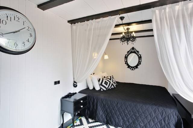 Building 2: Apartment with separate entrance consisting of a beautiful bedroom with fireplace, large windows and en-suite. Kitchen. Private parking.