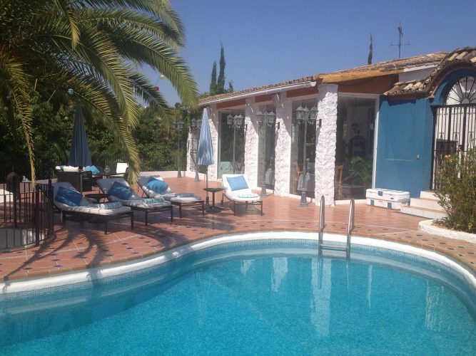 Substantial Country Property just a few minutes from the exclusive Golden Mile, Marbella. Hidden away within pretty tropical garden and beautiful swimming pool. This picturesque villa is a highly sort after destination for those discerning tourists coming to Marbella. . There are 5 large bedroom suite one of the suites having a 2nd bedroom and a self contained apartment - ideal for staff.
