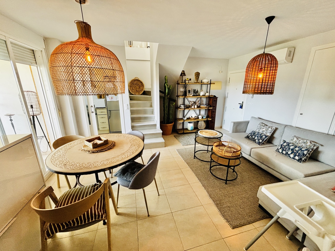 Modern south facing Penthouse duplex apartment for sale in Javea, small complex, located close to all amenities and only 10 minute walk to Javea port and 15 to Arenal beach. Lower level: Lounge/dining room with A/C, fully equipped kitchen with utility area, south facing terrace with open views, double bedroom with separate bathroom. Upper level: master bedroom with A/C, ensuite showroom, large south facing terrace with great views. Private parking, Wifi available. The ideal apartment for your holiday or permanent home.