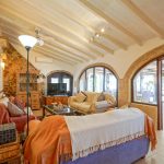 This traditional villa is situated on a flat, sunny plot of 1000 m2 and offers lovely views over the wooded hills behind Javea. The villa is south-facing and spread over two floors. You enter a very spacious naya, from where there is access to the living-dining room with a bar. The living-dining room is characterised by the traditional arches made of Tosca stone and the high ceiling. Adjacent is a spacious, modern kitchen. From the living room there is access to a second lounge from where a staircase leads upstairs. Next to the staircase is a single bedroom. The upper floor comprises a double bedroom with an en suite bathroom and a single bedroom. There is also a guest toilet and a storage room on the ground floor. The villa has a swimming pool and lots of parking space. There are also several fruit trees on the plot including a lemon tree, 2 orange trees, a pomegranate tree, an almond tree and a fig tree. Javea town centre can be reached in less than 10 minutes. The villa has a business licence and has been a well-established restaurant for many years. Video on request.