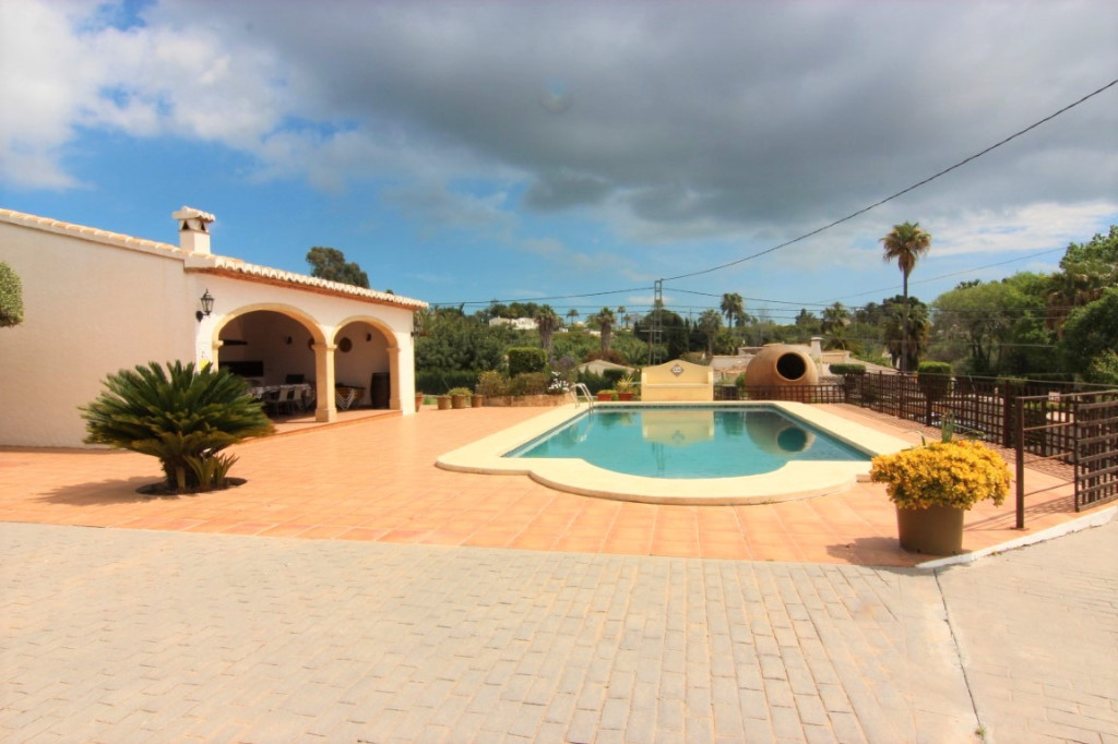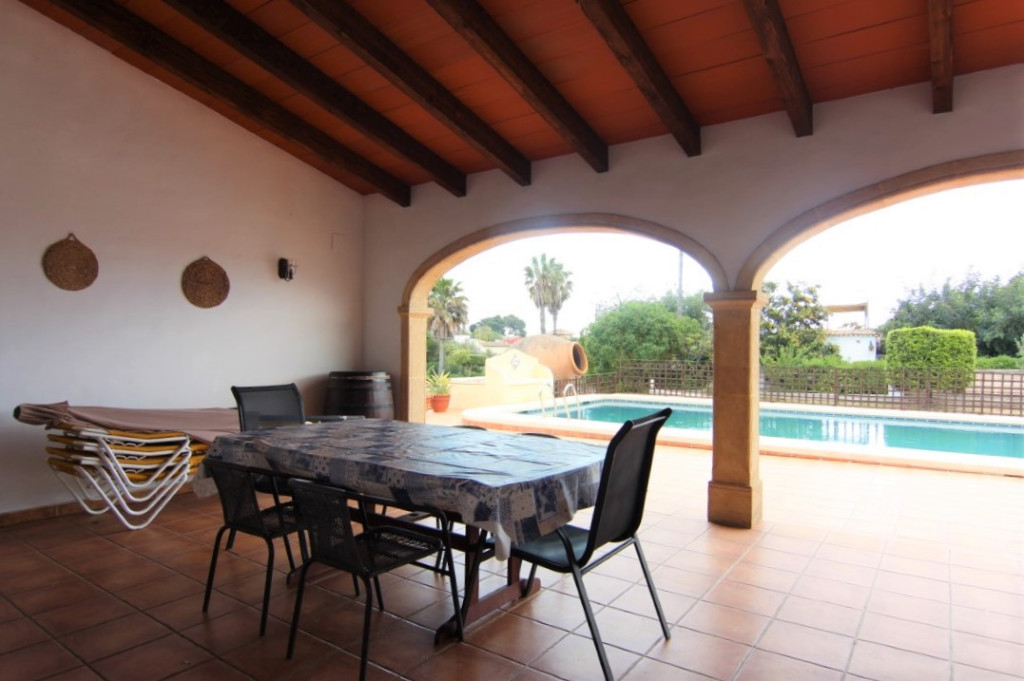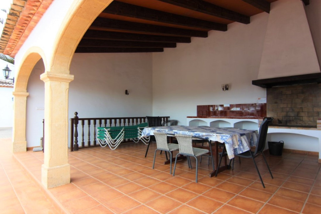 This traditional Spanish villa is located in a quiet neighborhood within walking distance to the old town center of Jávea. The villa was completely renovated in 2005 where the plumbing and electrics were completely renewed. A new septic tank was also installed in 2005. The villa is located on a plot of up to 1561 m2 and has two spacious covered terraces. The ground floor consists of a large living room, a kitchen, a bathroom, 2 double bedrooms, one with a private bathroom and an extra room that can be used as a utility room or storage room. Upstairs there are 3 more double bedrooms and a bathroom. Next to the pool is a large covered outdoor kitchen, here there is also a staircase leading to the wine cellar. There is also a garage and a large driveway with plenty of parking space. While walking you can reach the old town center where you can find all facilities such as supermarkets, schools, pharmacies, doctors' offices, etc. In less than 10 minutes drive you can reach the port and the beach of Jávea. A villa with a lot of potential!