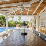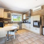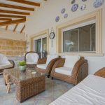 A few steps lead to the veranda at the front door and into an entrance hall. From the hall, you enter the spacious, open kitchen with an adjoining dining area. Next to the dining area is a living room with a fireplace. The eastern side of the villa features a master bedroom with an en-suite bathroom and two bedrooms with a shared bathroom. All bedrooms have built-in wardrobes, shutters and air conditioning. The villa features underfloor heating and a fireplace to guarantee maximum confort all year round. Besides the villa has a laundry room located in between the kitchen and the hallway. Outside, there is a spacious covered terrace on both the south and west side of the villa. There is also a large swimming pool with an outdoor kitchen and an outdoor bathroom. Ideal to spend long summer evenings outdoors. The villa is surrounded by a mature Mediterranean garden and has several parking spaces, a carport and a storage room.