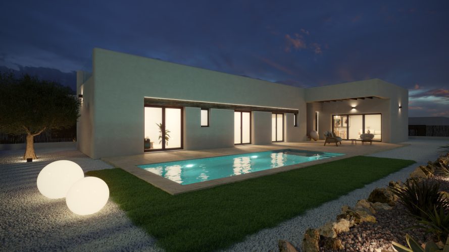 Contemporary design villas matching mediterranean architecture & minimalist style with breathtaking views overlooking the 11th fairway.Detached properties 3 bedrooms and 2 bathrooms on a single level including equipped kitchen and ducted air conditioning fully fitted.Designed with the highest building specifications and solar panels, Eonia villas architecture is much more efficient and sustainable obtaining Energetic Rating A as a result of our company commitments.A dream home with spacious exterior areas with swimming pool 8 by 3 meters, private indoor parking with pergola, electric shuttersand management system are some of the highlights of this exclusive development.