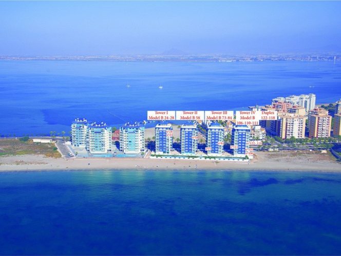 These key ready 2 bedroom, 2 bathroom apartments are built and ready to move into. They are located on the La Manga strip set on the beautiful Mar Menor with stunning views over the Mediterranean sea and close to a large selection of shops, bars and restaurants.