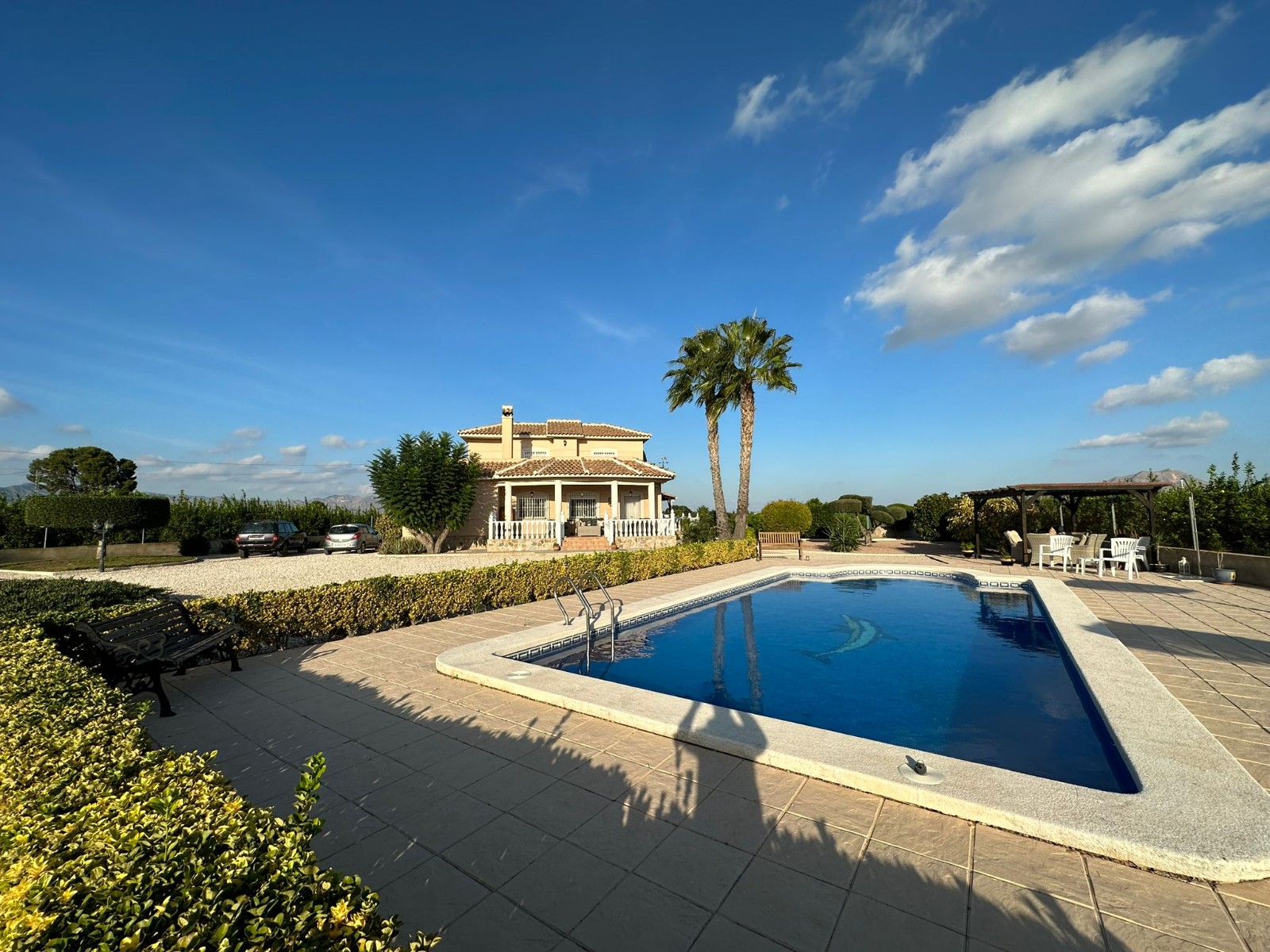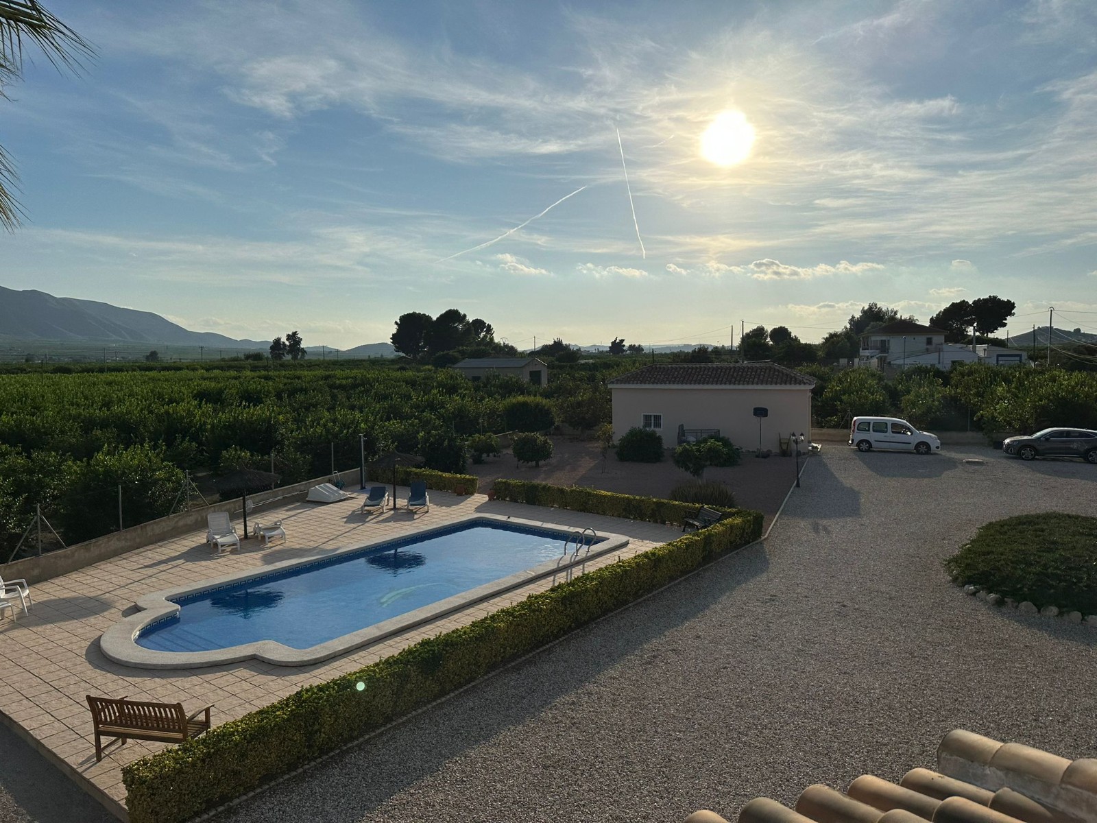 Nestled within the picturesque landscape of Orihuela, Spain, this enchanting Spanish finca offers a tranquil haven where the beauty of nature seamlessly integrates with the comfort of modern living. Surrounded by fragrant orange trees, the property stands as a testament to the region's natural splendor, while boasting breathtaking mountain vistas that grace the horizon.