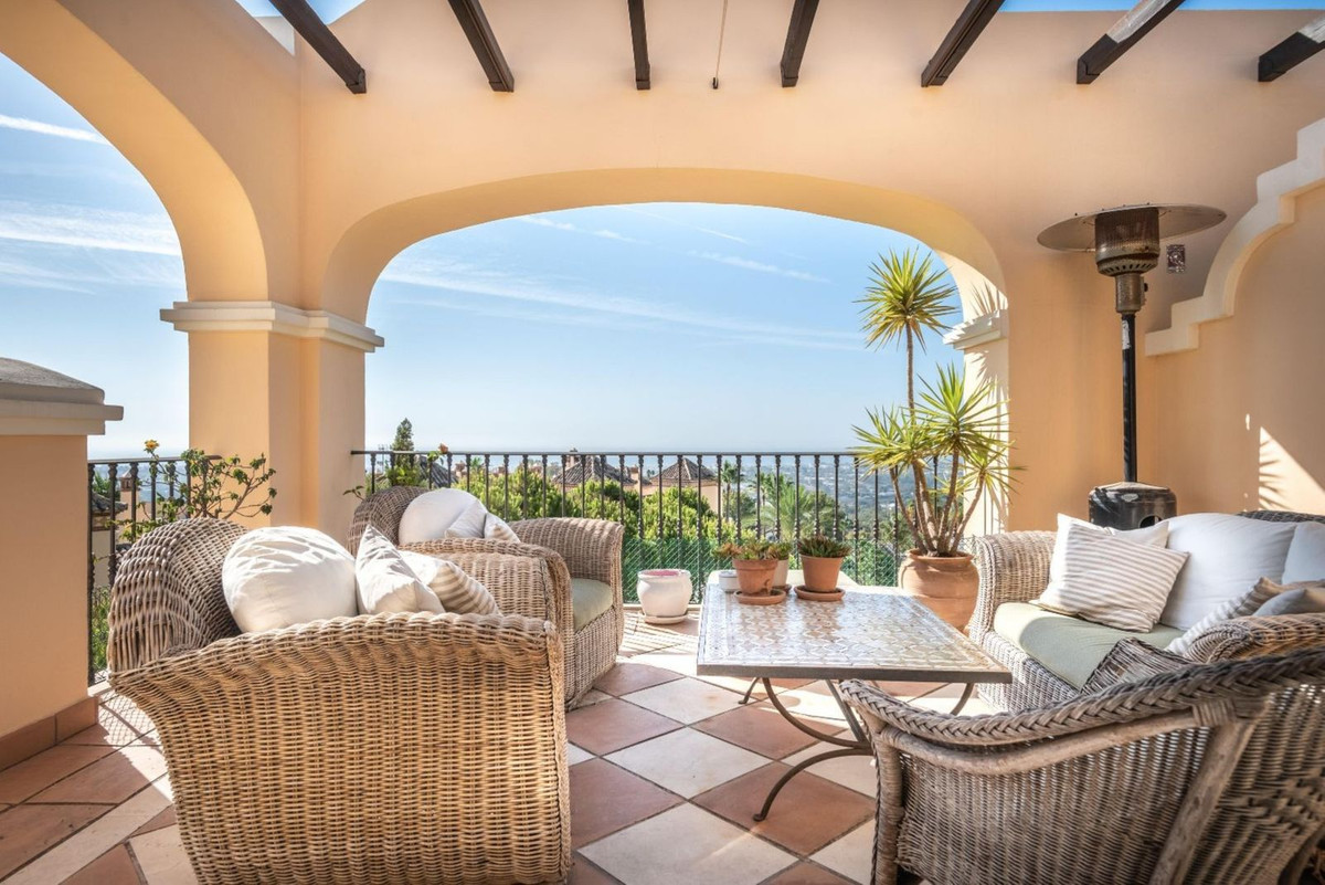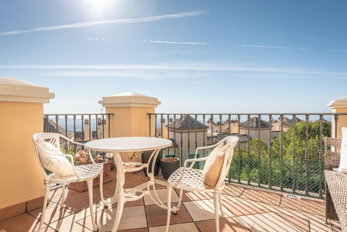 This exceptional penthouse is located in a highly sought-after residential complex , perched on the hillside of La Quinta, it boasts stunning views of the sea, valley, golf course, mountains, and picturesque countryside. The complex is conveniently just a short drive from the vibrant town of San Pedro Alcántara on one side and Nueva Andalucía on the other, providing residents with a diverse