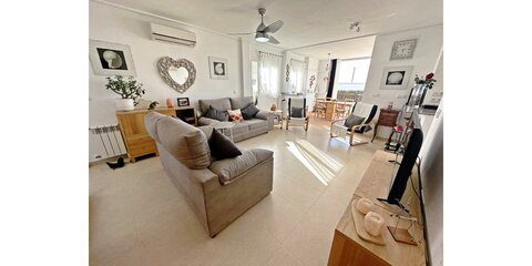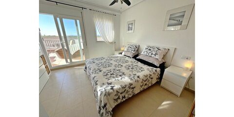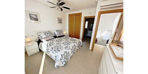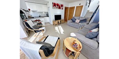 Murcia Golf Properties are pleased to offer this beautiful UPGRADED Sunny End Townhouse which is close to the facilities , pools and enjoys stunning views over the countryside to the mountains and the breathtaking sunsets we enjoy in this region. La Torre Golf Resort is 5 minutes drive from the towns of Roldan and Balsicas, 15 minutes drive to the Murcia Airport and 15 minutes drive to the closest beach. This superb 2 bedroom 2 bathroom end townhouse has been extended front and rear, the current owners have created an entrance hall and clever storage by extending onto the patio outside the frontdoor. They have also extended the lounge and kitchen onto the covered terrace. As you walk into the property you get a feeling of space and light die to the large open plan aspect and the south facing windows on the side, the lounge leads into a bright dining area with large bifold patio doors and a VIP furry four legged kids door too. The kitchen has been reconfigured and upgraded with modern white gloss cupboards, granite worktops, new white goods and boiler, and the double sink has been repositioned under the window. The kitchen also leads onto the dining area. The spacious garden has been fully fenced and astro-turfed and is a real suntrap. there is a guest room and bathroom downstairs with upgraded vanity unit and also a useful understairs cupboard. The stairs lead to the large master bedroom which is full of light and has its own en-suite with upgraded vanity. The master bedroom has patio doors that access the spacious first floor terrace where you can enjoy the views over the countryside to the mountains and have a glass of vino watching the sunset. This property is drenched in sun as has a south and a westerly aspect and also gets the cooling breeze from the sea inthe summer. There is full AC, gas central heating and off street parking. It is being sold with white goods All the upgrades have been done in the last year. This will sell fast so contact us asap to arrange a viewing or a virtual viewing.