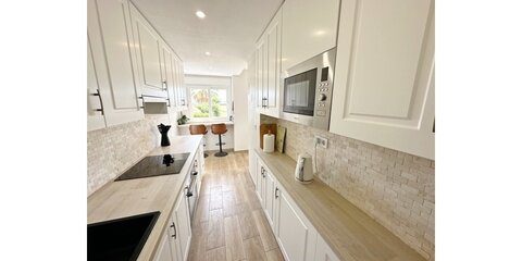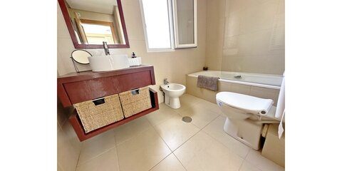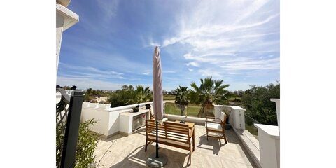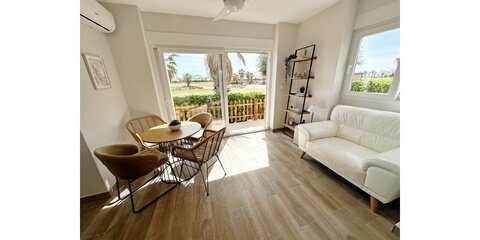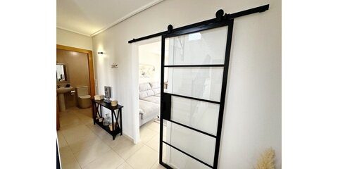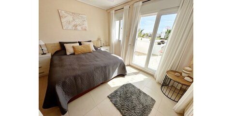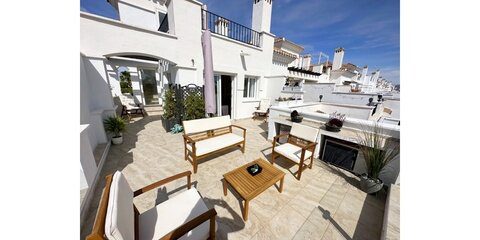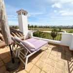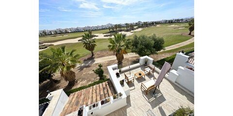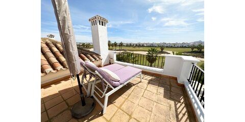 MGP are delighted to offer this absolutely breathtaking three storey townhouse for sale on La Torre Golf Resort.  The current owners have extensively modernised the property, it is beautiful. The townhouse is an end property, thus getting all day sunshine and is being sold with aircon and gas central heating throughout and furniture being negotiable.  It enjoys frontline golf views from all three terraces.  The resort is a short drive from Murcia airport and the town of Roldan and approximately 20 minutes from the city of Murcia and the beaches of the Mar Menor.  On site you have various bars and restaurants, supermarket, clubhouse and Double Tree Hilton Hotel.   You enter the property into the hallway, the owners have completely rearranged the layout of the downstairs. Rather than the property being completely open plan, they have enclosed the lounge and completely separated the kitchen.  A sliding glass door separates the lounge from the hallway, leading into the bright and sunny lounge.  Patio doors lead to the enclosed terrace and gorgeous new kitchen.  New floors have been laid in the terrace, kitchen.  Patio doors lead onto the tiled and private terrace where you can enjoy the golf views.  There is one double bedroom downstairs with fitted wardrobes and a separate guest shower room also housing the washing machine.  Stairs lead to the master suite with bathroom and access to the first sunny solarium.  The owner has replaced all the outdoor tiles and added glass instead of the usual balustrades making the most of the wonderful views. The walls have also been raised for full privacy.  From this terrace there is door leading to a further secluded roof solarium. This is an extremely private property and immaculately presented.  Possibly the best townhouse on resort.  Viewing essential.  Contact the MGP office on 00 34 868 11 00 11 to book a viewing with one of our agents.  NOTE more images available on request.