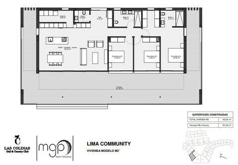 MGP New Homes present for sale this stunning brand new villa located in the Lima community on the prestigious Las Colinas Golf Resort. This spacious contemporary villa comprises a spacious open-plan living room with modern fitted kitchen and sliding doors leading into the garden. There is a master bedroom with en-suite bathroom, separate guest WC, two further double bedrooms with fitted wardrobes and a family bathroom. Outside there is off-street parking and a spacious West facing terrace with a private swimming pool. Contact MGP New Homes to arrange a viewing of the showhome.