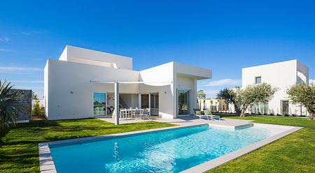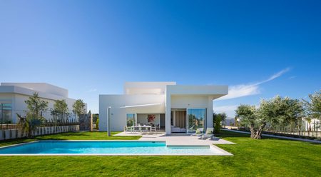 The villa features a large open plan kitchen, dining and lounge with large windows which adds to the spacious feel of the property. Located on very large plots of up to 1000 m2 these properties offer a good size living space with large terraces and gardens overlooking the villas. The villas also offer the highest level of modern home technology.