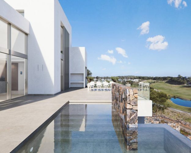Extraordinary 4 Bedroom, 3 Bathroom Villa With Outstanding Views on Las Colinas Golf Country Club Resort. Situated on a downhill slope, this luxury villa steps with the land, allowing the creation of four levels and fitting the house into its natural setting. This elegant four-storey villa features an open-plan kitchen, dining and living area, two suites with their own bathrooms and two bedrooms. A solarium, infinity swimming pool and spacious terraces showcase beautiful views of the championship golf course.