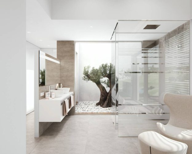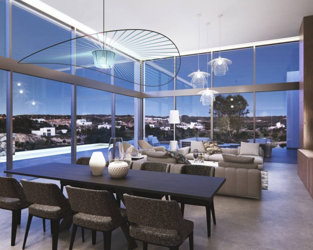 Underfloor heating, Air conditioning, Home Automation system, Motorized interior shades, Schüco doors systems Motorized Venetian blinds. Fully furnished, Home appliances Water softening system Outdoor whirlpool.