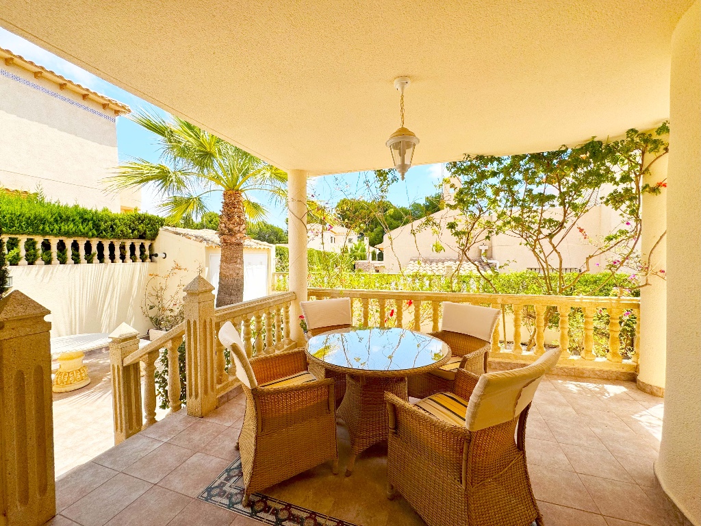 VILLA FOR SALE CLOSE TO GOLF COURSE “LAS RAMBLAS DE GOLF" For sale a 2 levels villa close to the golf course “Las Ramblas de Golf" in Orihuela Costa. The detached house has 3 bedrooms, 3 bathrooms, large living room with dining room and open kitchen, beautiful terrace overlooking the pool, solarium , private pool and plenty of space for sunbathing, BBQ and parking. The villa is in perfect condition. The outdoor area of the house has garden areas and a large private pool, an ideal place to relax. The property selling furnished, with A/C .The house is located in a picturesque area, in the south of the Costa Blanca. Here, among the fantastic landscapes and scenarios is a true paradise for life. In the area of infrastructure development, there is everything you need - shops, restaurants, banks, pharmacies, playgrounds and much more. The sandy beaches just a few minutes by car. Here a beautiful Mediterranean climate with 320 sunny days a year.