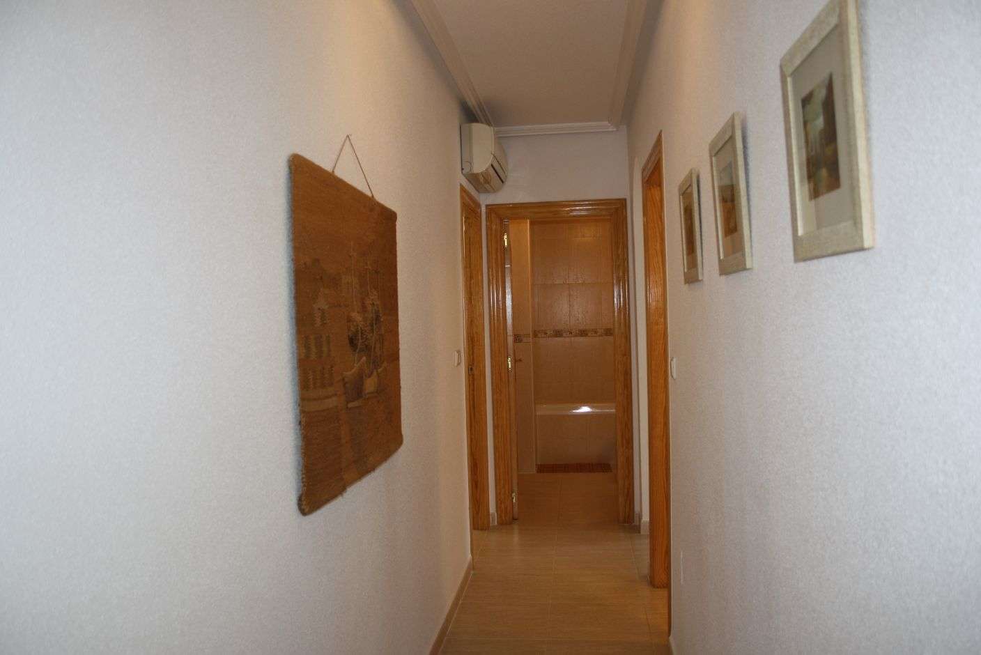 - Hallway: 12m2. On entering the apartment there is an L-shaped hallway with access to all rooms. There is an entry phone system and hot & cold air conditioning in the hall.