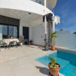 Located on the Serena Golf resort in Los Alcazares on the Mar Menor. A really unique ground floor apartment with a private pool and two large terraces guaranteeing sun throughout the day. This apartment was built just a few years ago and has a modern, clean style both inside and out.