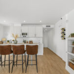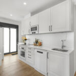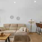 The property has a surprisingly spacious feel inside with a large living and dining room, adjoining kitchen with bar area and two bedrooms and two bathrooms. One of the bathrooms is ensuite to the master bedroom which also has direct access to the big back terrace. The back terrace wraps around the side of the apartment to the kitchen, from which there is another access meaning guests don't have to go through the master bedroom to access the terrace.