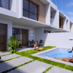 LAST 1 available! (update 15 january 2024) Paella, Tapas, fresh fish, ham, cheese……that is Los Alcazares! Residencial Eucalipto is a luxury complex of 4 townhouses with private pool, terraced areas with Summer kitchen, covered garage and large solarium that allows you to enjoy all hours of sunshine, every day of the year. Each townhouse has 3 bedrooms and 3 fitted bathrooms. Designed on two levels with a contemporary style and open planned concept, comprising a fully-fitted kitchen and lounge-dining room. The development is located in Los Alcázares (Murcia), 800 m. far to the beach, surrounded by all services, parks, sports facilities and several Golf Courses. The property will meet the highest standards and will be equipped with: * Private swimming pool with LED lighting and shower. * Kitchen completely furnished and equipped with oven and microwave in column, integrated fridge and dishwasher, ceramic hob and extractor fan. * Lighting: LED inside the property (dining room, kitchen, corridors and bathrooms), and well as in outdoor areas. * Lined wardrobes with drawers, shelves and clothes racks. * Fully fitted bathrooms with design vanity unit, toilet, mirror and rainfall shower column with shower screens. * Pre-installation for air conditioning. * Terrace with Summer kitchen. * Covered garage on the plot. * DELIVERY april 2024 RESIDENCIAL EUCALIPTUS – LOS ALCÁZARES (MURCIA) QUALITY LIST Residencial Eucalipto is a unique development of 4 townhouses with private swimming pools, garage and solarium for each property. FOUNDATION AND STRUCTURE, FAÇADE AND PARTITION WALLS  Reinforced concrete foundations and structure. Sanitary slab acconding to CTE.  Façade enclosure with external partition wall with 11 cm ceramic block and plasterboard cladding with thermal and acoustic insulation according to CTE.  Interior partition walls of 8 cm of plasterboard.  Façade finished in a combination of fine plastered single-layer mortar with plastic paint and ceramic tiles. SOLARIUM, FLOORING AND TILING  Flat roof with thermal insulation, and waterproofing with asphalt fabric finished with ceramic tiles. External solid metal staircase.  Interior flooring in first quality ceramic tiles.  Ground floor garden with first quality anti-slip ceramic tiles and green area according to plan.  Bathrooms and kitchen with first quality ceramic tiles and acrylic paint. EXTERIOR AND INTERIOR CARPENTRY, AND LOCKSMITHERY  Exterior carpentry in PVC with hermetically sealed sliding doors and thermal aluminium shutters on exterior windows. Double laminated glazing with thermal break.  External garden doors made of thermo-lacquered metal profiles and panelled with aluminium slats. Reinforced entrance door with CE marking, PVC exterior panel and smooth white interior panel.  Interior doors in white lacquered wood.  Wardrobes in all bedrooms with white lacquered doors, drawers, shelves and hangers. PLUMBING, DRAINAGE AND DOMESTIC HOT WATER  Hot and cold water plumbing installation with PPR pipes, according to CTE.  High quality porcelain sanitary ware. Modern furniture with porcelain vanity units and mirror. Built-in shower column with shower head.  Anti-slip shower tray with concealed drain, and transparent shower screens  Aerotherm boiler of 110 litres capacity. ELECTRICITY AND TELECOMS  General protection panel. TV points in every room. Preinstallation for fibre optics. Telephone box.  Interior lighting in kitchen, living room, corridor and bathrooms with LED spotlights, as well as in garden wall and solarium. HEATING AND AIR CONDITIONING, SWIMMING POOL AND GARDEN  Pre-installation for air conditioning.  Swimming pool with LED spotlights. Outdoor stainless steel shower. Pool pump system. KITCHEN  Kitchen with gloss lacquered doors and edges. Hinges with brake. Metal handles. Natural quartz worktop, Silestone or similar.  Balay appliances included: ceramic hob, oven and microwave in column, built-in fridge, extractor fan and built-in dishwasher.  Summer Kitchen on first floor terrace with sink and preinstalled for washing machine and small fridge.  The builder reserves the right to carry out modifications on the building works that might beofficially imposed and those arising from technical, legal and commercial requirements. Overview Villa Property Type 3 Bedrooms 3 Bathrooms 136 m2 2023 Year Built
