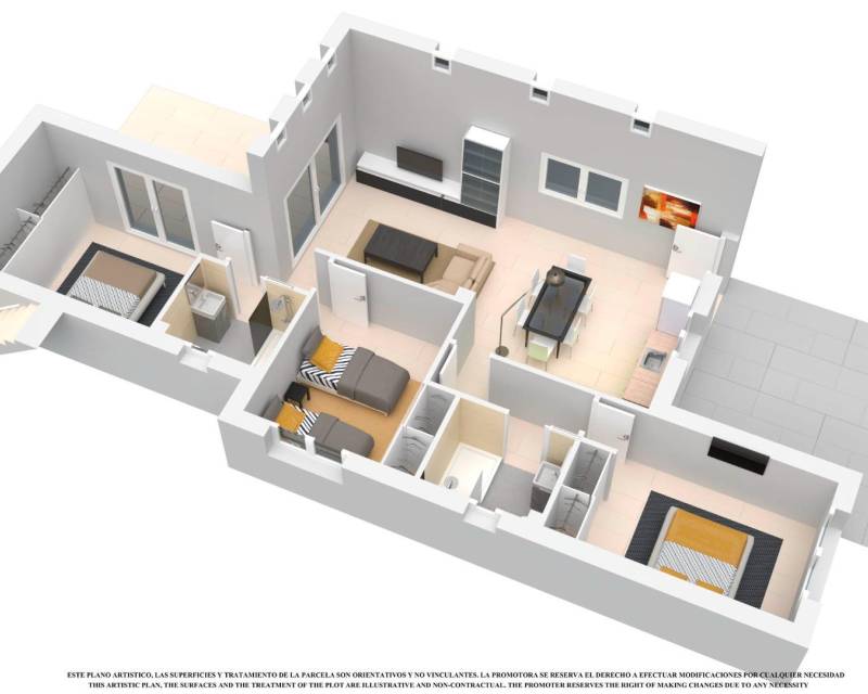 NEW BUILD VILLAS IN LOS ALCAZARES New Build detached villa build on the generous plot of 350m2 in Los Alcazares . Villa with 3 bedrooms and 2 bathrooms, open plan kitchen with the lounge area, fitted wardrobes, solarium, private garden with off road parking space and space for a swimming pool. An options for a private pool at an extra cost. Spacious living room has large sliding doors to a terrace. Ample terraces at the front and rear ensure that owners can sunbathe throughout the day. This villas have modern fitted kitchens with a choice of colours for kitchen units and wall tiles in both kitchens and bathrooms and also floors and terraces. Residential of villas located 1 km from the beach and the town of Los Alcázares, where you can practice various water sports, surrounded by several golf courses. City of Cartagena less than 15 minutes by car and 30 minutes from Murcia Corvera airport.
