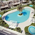 These modern Penthouses (bungalows) with 2 bedrooms, 2 bathrooms, 1 terrace and a large solarium are part of a beautiful resort that will have a total of 136 bungalows. In addition, an underground garage is also included in the price and you have the option to have a storage room (trastero) installed and possibly also a charging point for an electric car, if you wish. The resort has 3 communal swimming pools and 3 zones with jacuzzis for extra relaxation. You will also find a padel course, an area dedicated to biomechanics and gymnastics and a mini golf to enjoy with the family.