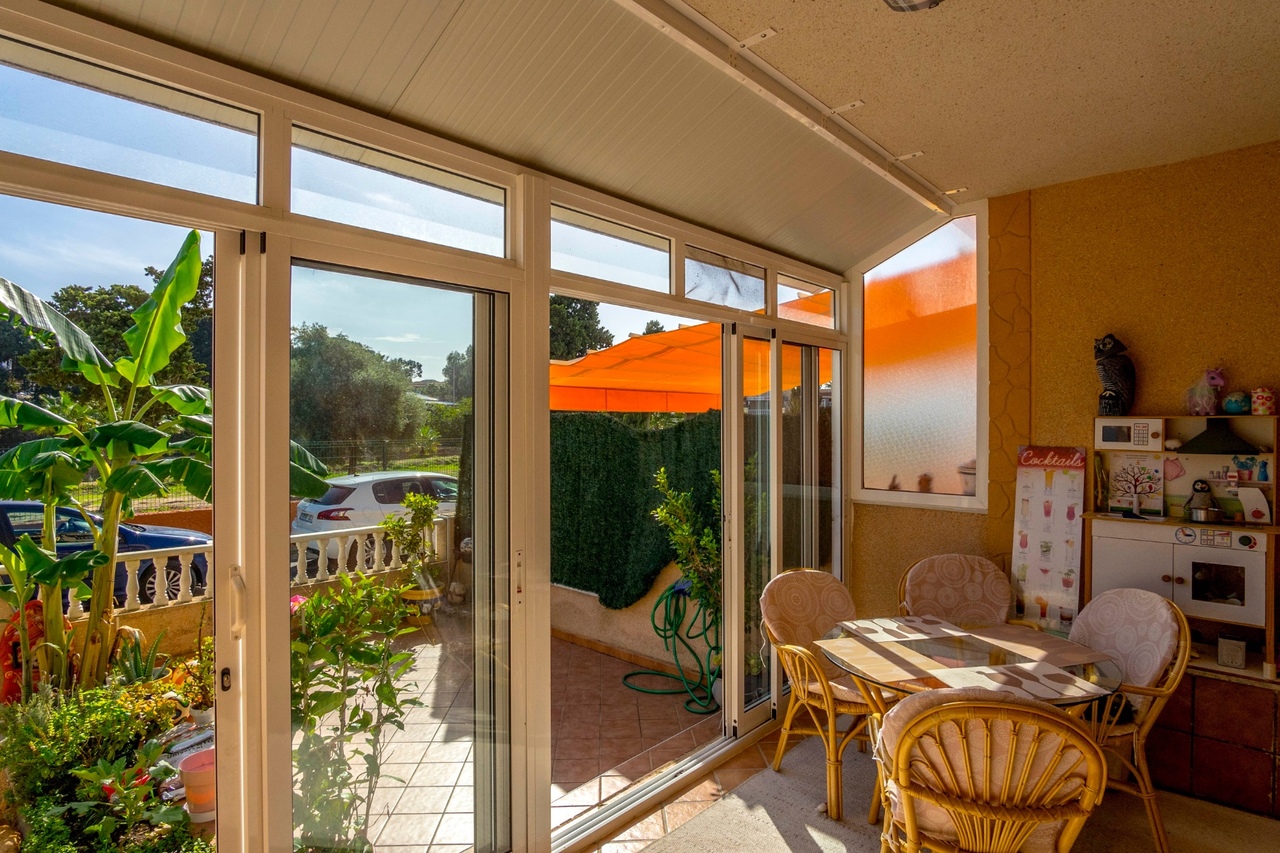 This bungalow is in very good condition, ready to move into, sold semi-furnished and with a fully equipped kitchen.The bungalow consists of two floors and this is how they are distributed:On the ground floor there is a fantastic south-facing garden with a glazed porch that gives access to the house with a very bright living room thanks to its orientation, a large bedroom, bathroom, independent kitchen with access to a patio.