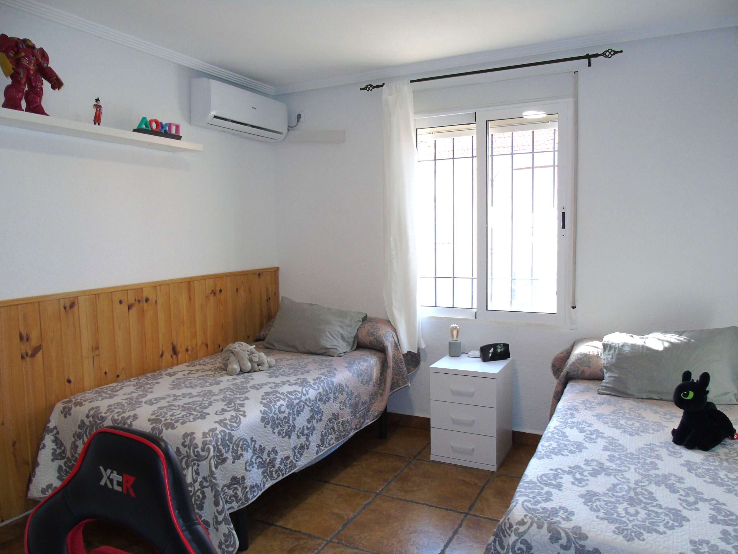 - Rear Patio: Washing machine and electric water heater. Part covered by an awning. Andalusian tiling. Spiral staircase to the roof terrace. Door to the street.