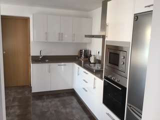 25 m2. Spectacular! Spacious fully fitted kitchen with eye level and base units. Integrated oven and microwave. Induction job with extractor hood. Integrated dishwasher, fridge freezer and separate freezer plus a wine cooler. Ceiling fan and TV point. This leads to a dining/lounge area.