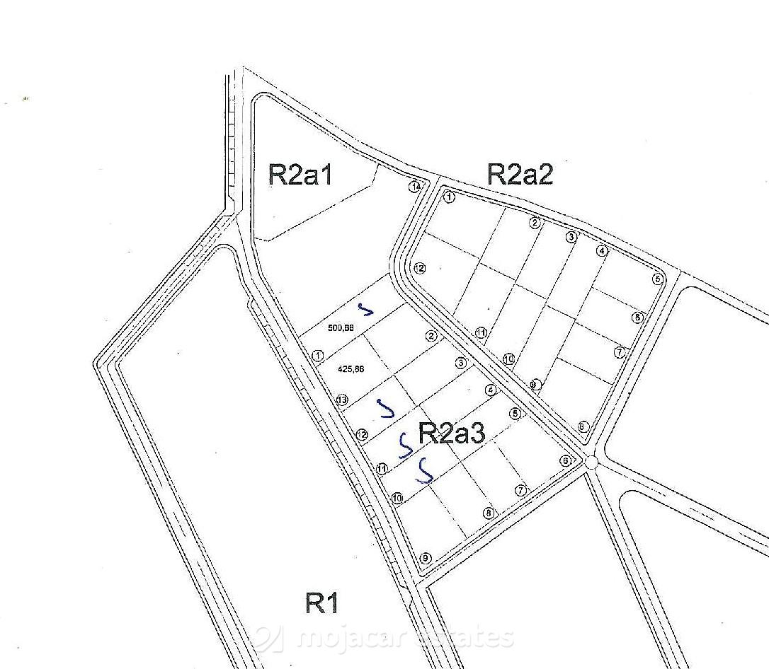 Consolidated urban plots of land for building individual villas for sale in Huerta Nueva, Los Gallardos, Almeria, Andalusia with lovely views of the countryside and mountains in the distance.