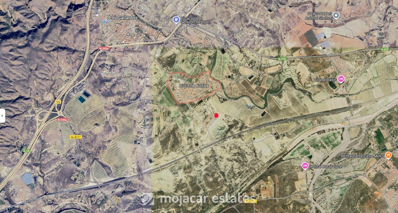 Location: See exact location of the land on the map above. Huerta Nueva is a residential area within the village of Los Gallardos. It is conveniently located 10 kilometres from the coast, offering easy access to well-known seaside towns like Mojacar, Garrucha, and Puerto Rey. The region enjoys pleasant weather throughout the year and is surrounded by natural parks, multiple golf courses, a variety of dining options, and convenient access to major cities and airports, including Almeria, Alicante, Lorca, Murcia, and Vera. Furthermore, a high-speed AVE train station is set to be established in Vera by 2027, just 20 kilometres away.