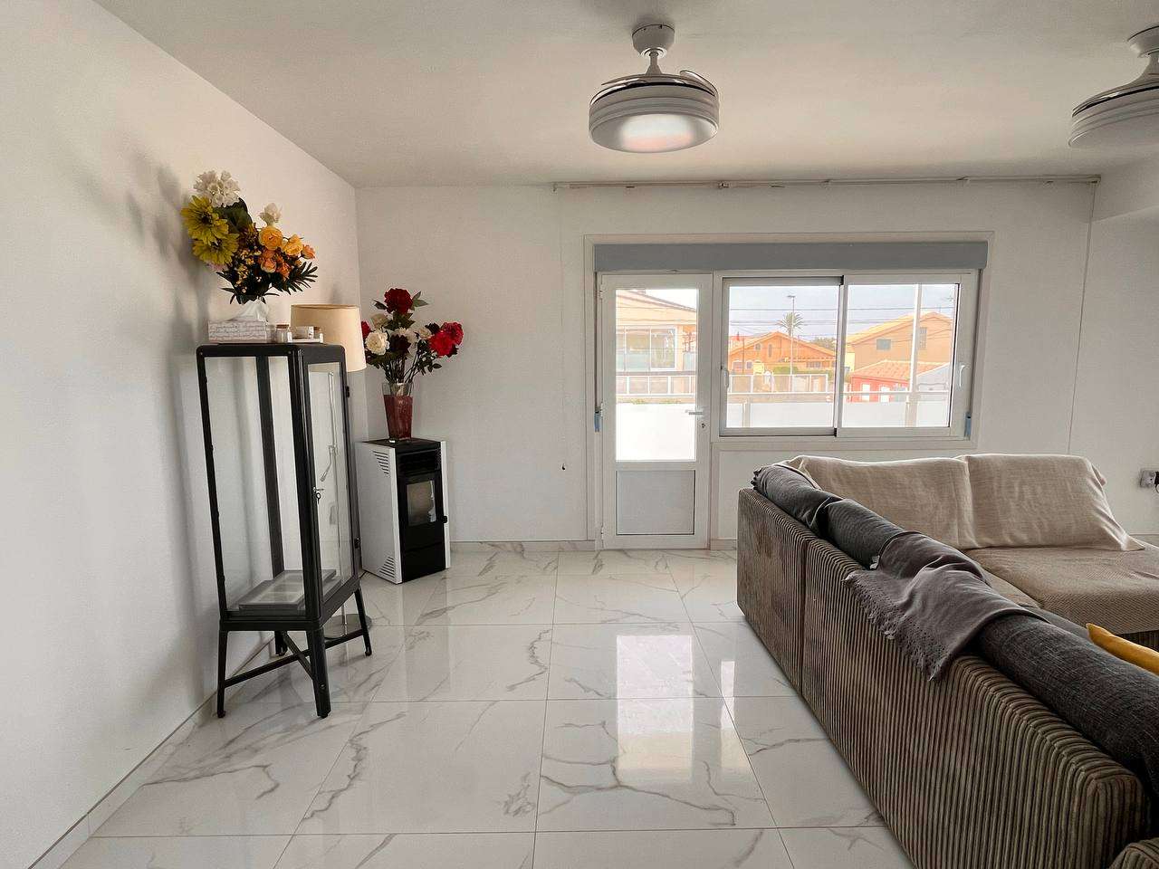 Located in Punta Brava just a short 15 minute drive from Los Alcázares, this detached villa has recently been renovated to the highest standards, including brand new electric and plumbing systems that ensure efficiency and peace of mind, and features exquisite porcelain flooring that looks stunning while ensuring durability. With four double bedrooms and two elegantly designed bathrooms, (the master bedroom boasting an ensuite), this villa offers ample space.