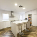 A brand-new designer kitchen, with a useful storage room directly off this space