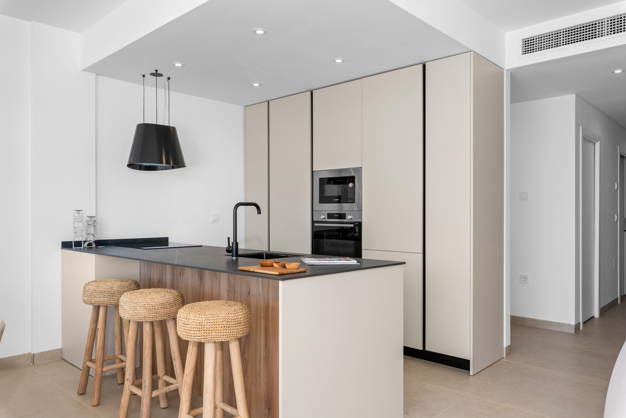 These fantastic KEY READY apartments are located in the popular coastal village of Mar de Cristal. The apartments have been designed to allow maximum light to enter the properties and also give privacy to owners. These properties will make excellent vacation or permanent family homes. Mar de Cristal has 1100m of beautiful sandy beaches, a tennis centre, marina, supermarkets, bars and restaurants. The Calblanque national park where you will find unspoilt long white sandy beaches, as well as the famous La Manga Club and the bustling town of Los Belones are all within a 5 min drive from the village. Murcia airport is 25 mins and Alicante 1 hour drive. You can also visit the historic cities of Cartagena and Murcia.