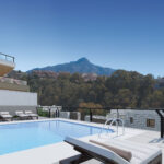 This private modern development is at the heart of Golf Valley, in Nueva Andalucia, just 5 kilometres from Puerto Banus. This 3 bedroom apartment has outstanding panoramic views surrounded by gorgeous landscaped gardens and four communal pools.