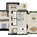 With a delicate contemporary Mediterranean style where natural materials and colours blend into the local scenery in a balanced way maximizing natural light. You will be able to enjoy the relaxed ambience and peaceful surroundings in its generously sized terrace and living room. Fully equipped delivered with top quality branded finishings and ready to move in with its own storage room and garage parking space.