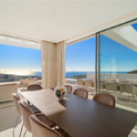 The interior offers generous volumes and refined contemporary design. A spacious open-plan living and dining area is centred around a designer kitchen equipped with premium Gaggenau appliances, seamlessly extending onto expansive terraces through floor-to-ceiling glass doors. Multiple outdoor spaces enhance the indoor–outdoor lifestyle, providing complete privacy and breathtaking sea and mountain views.
