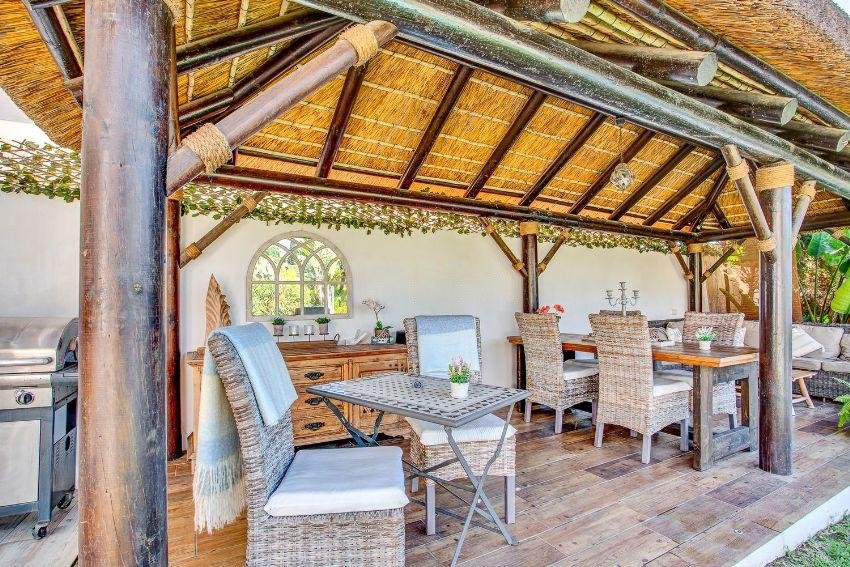 A luxurious family villa in Marbesa, one of the most exclusive areas of Marbella! A desirable large open plan villa on a flat south west facing plot with mature gardens and a large heated pool, and with wonderful panoramic sea views, just a few minutes walk from the beach and close to Elviria and the pretty port of Cabopino . The property is currently run as a highly successful luxury Bed & Breakfast, but the owners also use it as a family home. (This ongoing B&B Business can be purchased as an option) The property also has the advantage of being able to be used as three separate accommodation areas: a 3-bedroom house on the ground floor, a 2-bedroom apartment on the upper floor and a self-contained 1-bedroom apartment (ground floor).