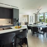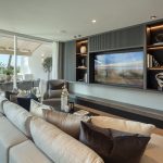 Upon entering this duplex on the ground floor, the open-plan living area is bathed in natural light, with ample windows. The kitchen and dining area seamlessly integrate contemporary design with natural materials and high-end appliances from Gaggenau and Miele. Ascending the stairs to the first floor reveals two spacious bedrooms, including the master suite. This bedroom features large wardrobes, an ensuite bathroom with a walk-in shower and bathtub, and picturesque views of the Mediterranean.