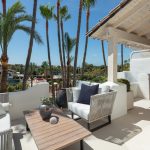 Nestled within the exclusive 5-star Puente Romano resort, in Marbella's coveted Golden Mile, this is a remarkable 3-bedroom property. Surrounded by the lush tropical gardens of the Puente Romano's Andalusian Garden, this exquisitely styled residence is a short stroll from sandy beaches and the tranquil Mediterranean waters. Boasting a total built size of 218 sqm and two covered terraces, the property offers a perfectly proportioned living space.