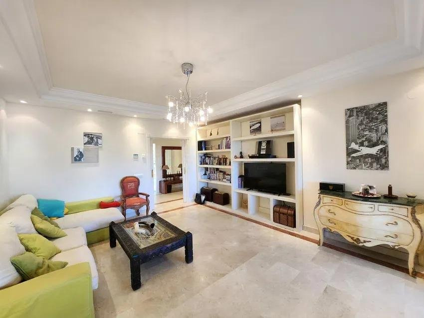 This urbanization is recognized for its excellent standard and its location, in the heart of the Nueva Andalucia golf valley. The urbanization has almost 20 000 square metres of beautifully landscaped gardens, as well as 2 large swimming pools; one of which is heated. It also has paddle/tennis court and 24-hour surveillance with cameras and individual electronic barriers with license plate recognition. This stunning apartment is located on a tranquil street, overlooking the golf course, la concha and the sea. The apartment is close to all amenities and just a short drive from Puerto Banus, local schools, supermarkets, restaurants and everything you need. The apartment is 275 m2 built and has 2 good sized bedrooms, all with panoramic view and en-suite bathroom. The living room and dining area is open plan with views towards the mountains and with access to a 60 m2 of terrace divided into two spaces (one open-air), facing to the sea at south-east. Private garden terrace made of volcanic stones and exotic plants recently renovated. The kitchen is fully equipped there is underfloor heating and air conditioning throughout the apartment. The appartment comes fully furnished down to the last detail. Ready to live. With Bang & Olufsen sound system, TV, €15,000 value made-of-horse hair Hästens bed, all appliances, blinds + electric awnings with remote control, etc. Three-phase electrical installation. The apartment has 2 allocated parking areas and a large storage room. We welcome your enquiries of this stunning apartment and will be happy to show it to you!